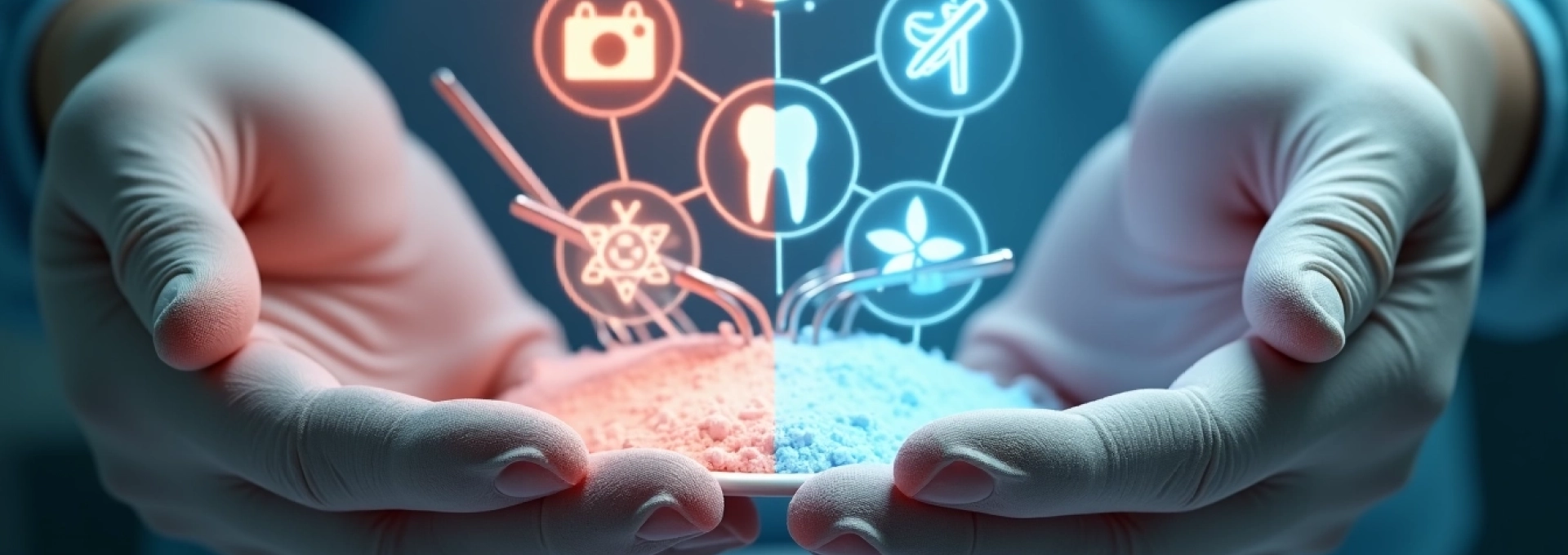 - La poudre permet une meilleure sensibilité tactile, facilitant les manipulations délicates et l’utilisation d’instruments fins et précis. Cette sensibilité est essentielle pour les procédures dentaires nécessitant une grande précision, telles que les interventions sur les canaux radiculaires.