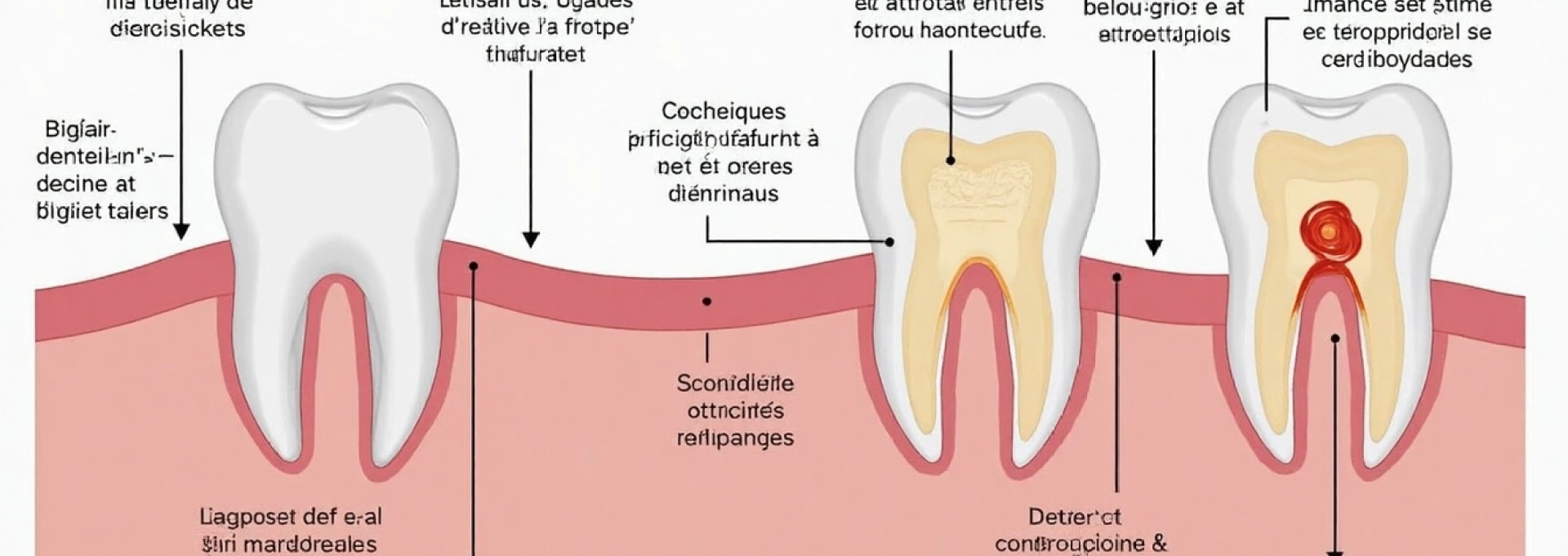 Ce processus de déminéralisation est normalement contrebalancé par la reminéralisation, grâce aux minéraux présents dans la salive. Cependant, lorsque l’attaque acide est trop fréquente ou prolongée, la balance penche en faveur de la déminéralisation. Une lésion carieuse se forme alors, d’abord invisible à l’œil nu, puis évoluant progressivement vers une cavité visible. Sans intervention, la carie peut progresser à travers la dentine jusqu’à atteindre la pulpe, entraînant douleur et infection.